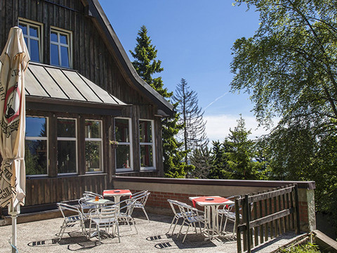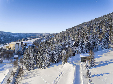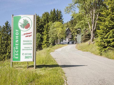 Welcome to the guesthouse/inn Naturbaude Eschenhof in Oberwiesenthal at 1000 m above sea level, located on the quiet outskirts of the town and at the forest's edge with direct access to the hiking and skiing area of Fichtelberg.