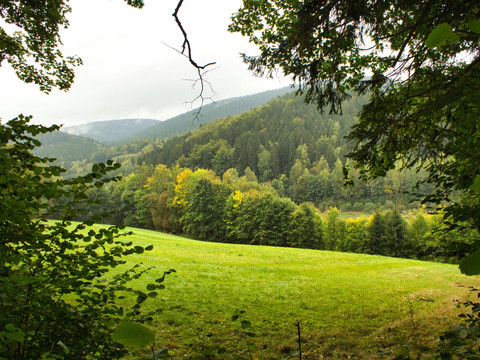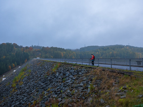 The hike starts directly at the parking lot at the lower reservoir of the Markersbach pumped-storage power plant. Information boards on the dam wall provide fascinating insights into the operation of Germany's second largest pumped storage plant, which is an impressive technical site in the heart of the Ore Mountains. Together with the upper reservoir, the lower reservoir plays a central role in the temporary storage of energy from renewable sources and is therefore an important component of the energy transition.