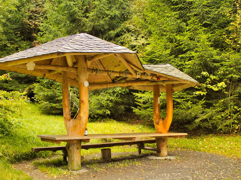 A few meters further on, another water wheel awaits - this time a large one - along with a shelter and Kneipp facility for refreshment. The last few meters back to the parking lot are on an asphalt path.