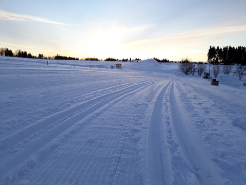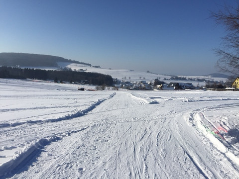 A practice slope with ski lift awaits all kids in the children's ski school. Of course, the ski instructors are also happy to assist "grown-up" beginners and advanced skiers or snowboarders who want to improve their individual skills. An illuminated artificial snow cross-country ski trail with direct connection to the local trail as well as a natural ice rink, which invites you to ice skating and ice stock sport, guarantee unique winter sports fun. No matter which offer you want to use, the necessary equipment can be rented at the Sport World.