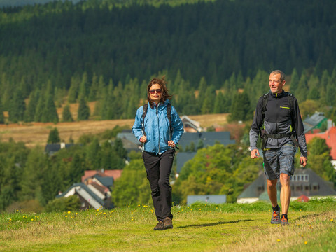 The trail continues to the even higher Keilberg (Klínovec), the highest mountain in the Bohemian Ore Mountains. At the summit, panoramic views over the Ore Mountains and the Fichtelberg region invite you to enjoy what you have achieved.