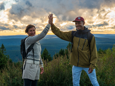 The final highlight of the tour is the Fichtelberg: at 1,215 m, it is the highest mountain in Saxony. The observation tower offers a fantastic panorama of the entire Ore Mountains and far beyond. After the summit, the well-maintained trail only leads downhill back to the center of Oberwiesenthal.